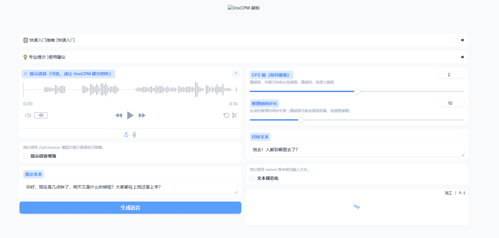 --cfg-value 2.0 --inference-timesteps 10 --normalize